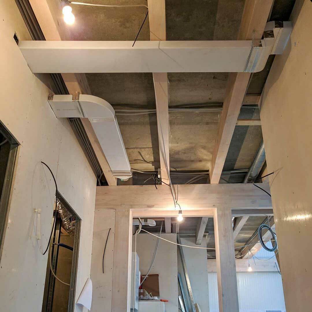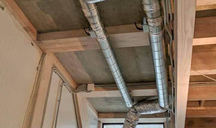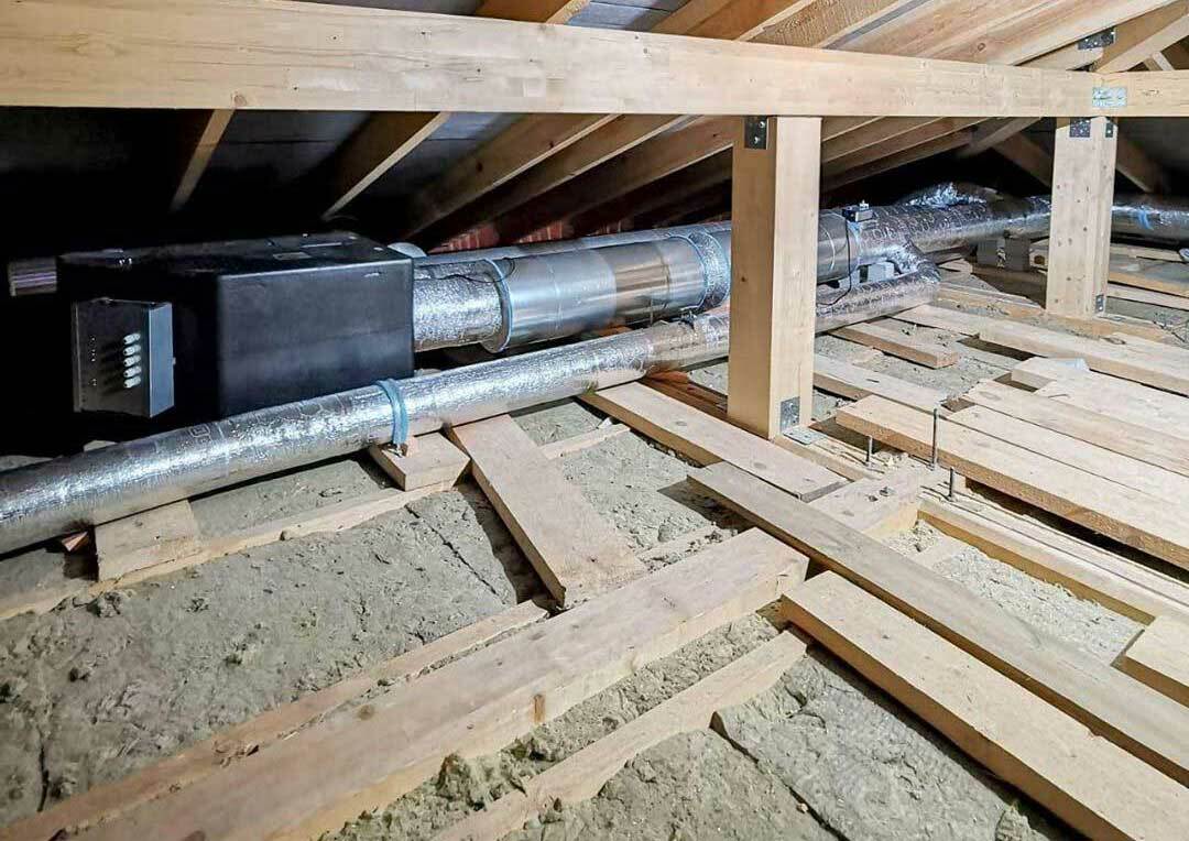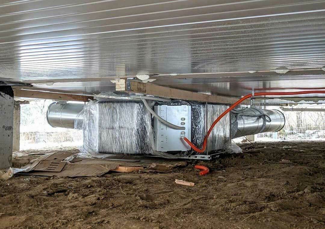 Оснащен климатическим оборудованием с рекуперацией и компрессором - NOTOS 6000 WD-S-CP. Оборудование располагается в подкровельном помещении.